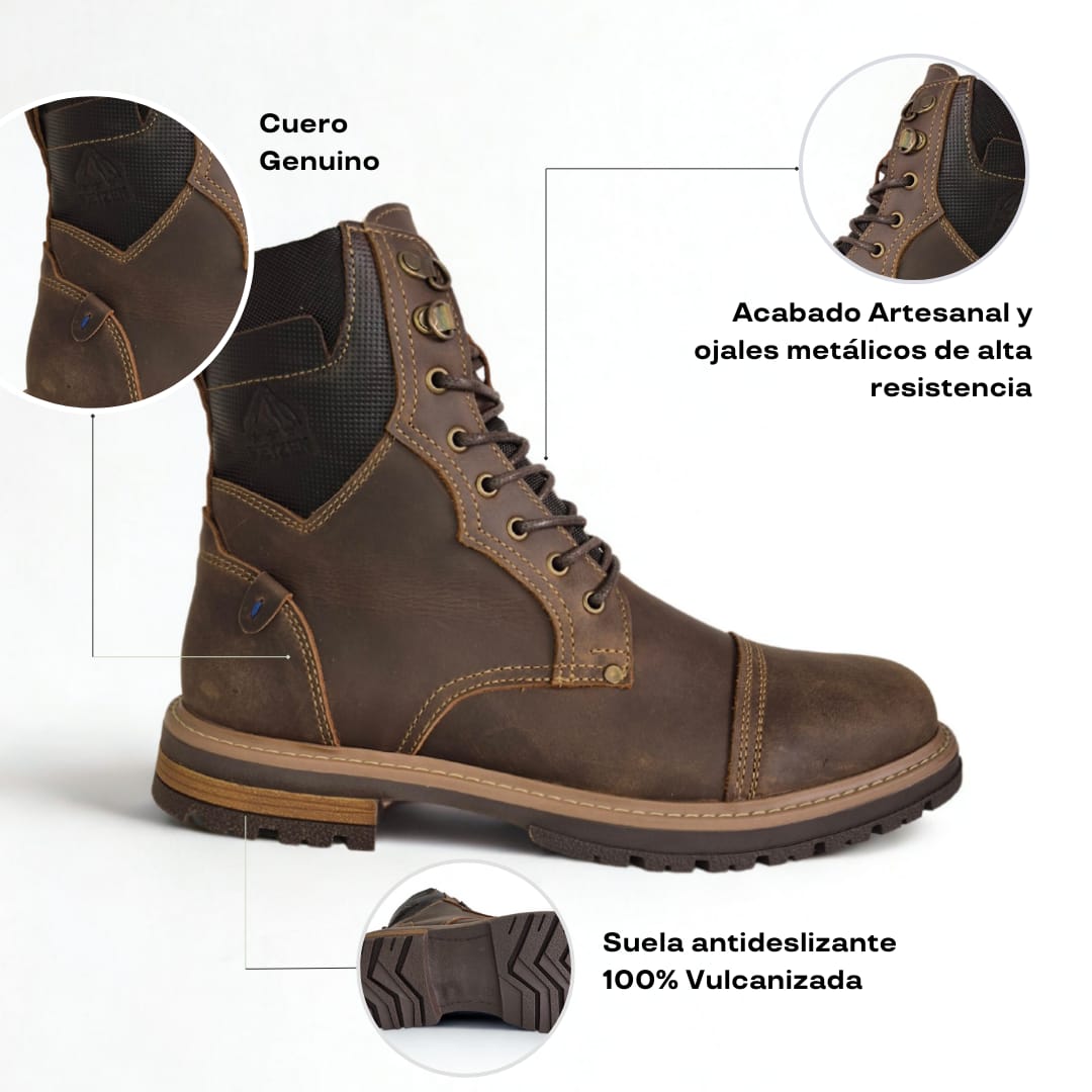 • Cordonera con Herrajes y Ganchos Metálicos: Para un ajuste seguro y un estilo refinado, las botas cuentan con una cordonera que incluye herrajes y ganchos metálicos.