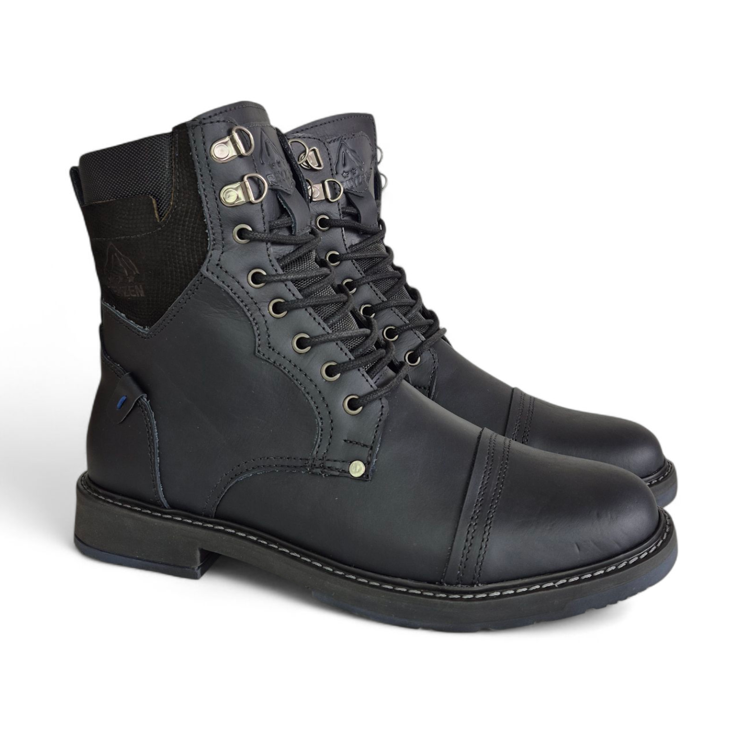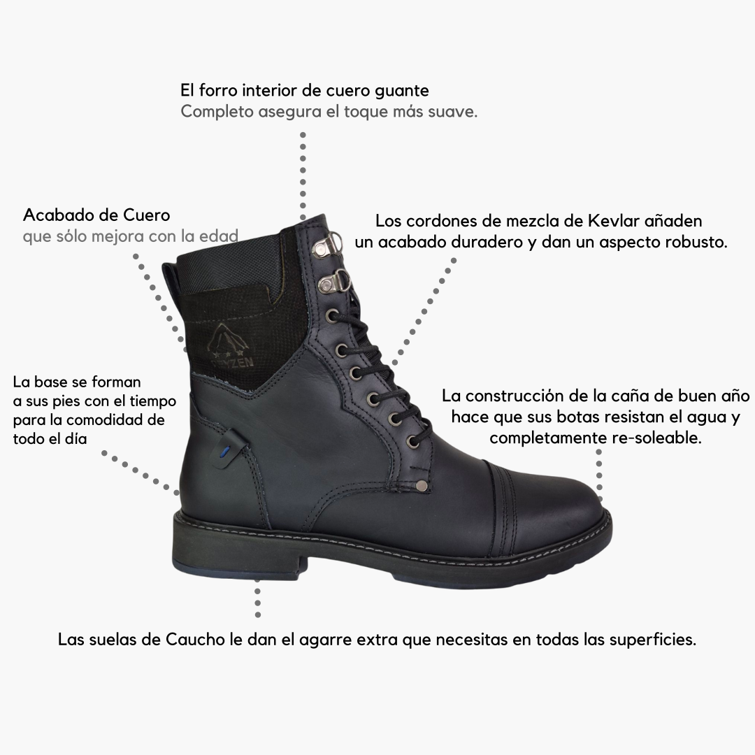• Cordonera con Herrajes y Ganchos Metálicos: Para un ajuste seguro y un estilo refinado, las botas cuentan con una cordonera que incluye herrajes y ganchos metálicos.