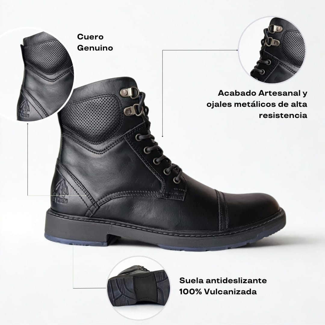 • Cuero Brillante: Elaboradas en cuero Brillante, estas botas ofrecen durabilidad te ofrecen un aspecto elegante y distinguido.