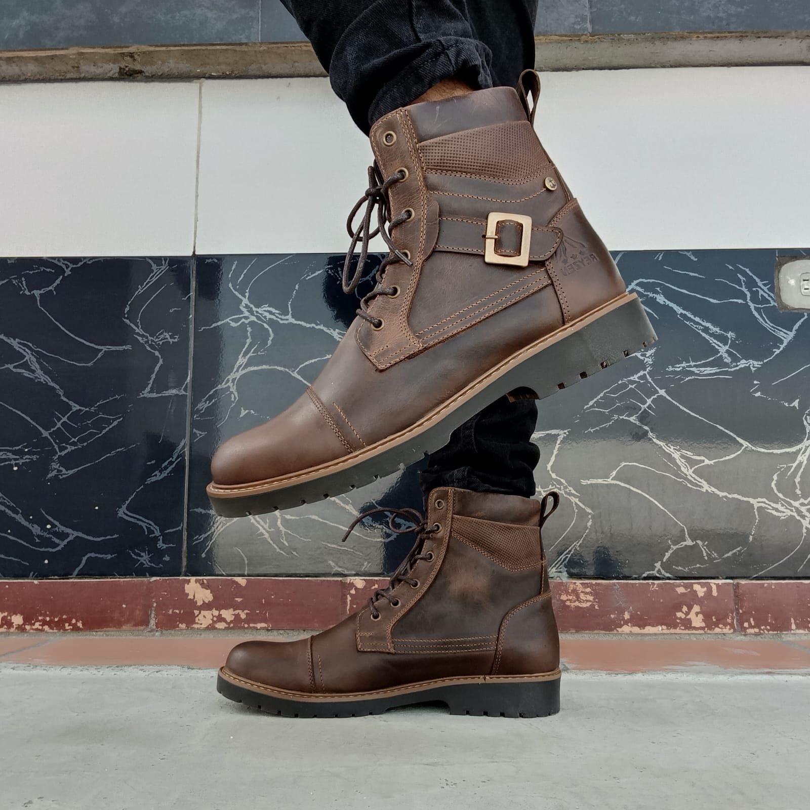 • Cordonera con Herrajes y Ganchos Metálicos: Para un ajuste seguro y un estilo refinado, las botas cuentan con una cordonera que incluye herrajes y ganchos metálicos.