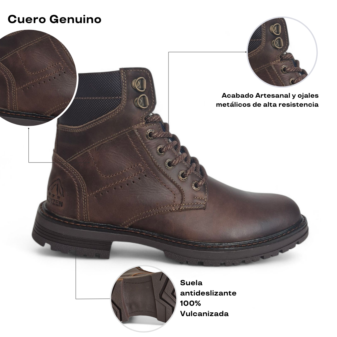 Con un espíritu de aventura y exploración, nuestras botas Reyzen delinean su robusta silueta y detalles inteligentes con toques de artesanía atemporal, perfectas para estilos de vida flexibles y dinámicos. Cada par, elaborado con cuero graso y acabado manual, refleja la dedicación y exclusividad que componen el ADN de Reyzen